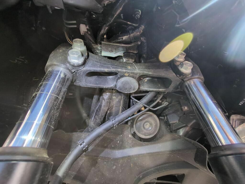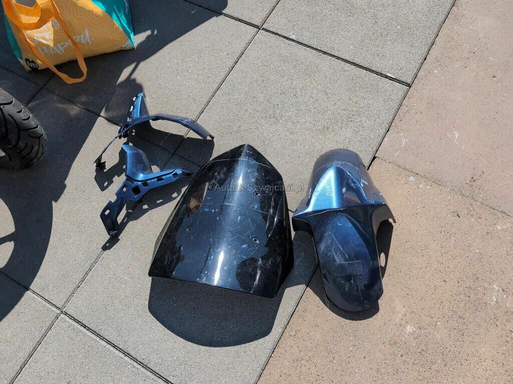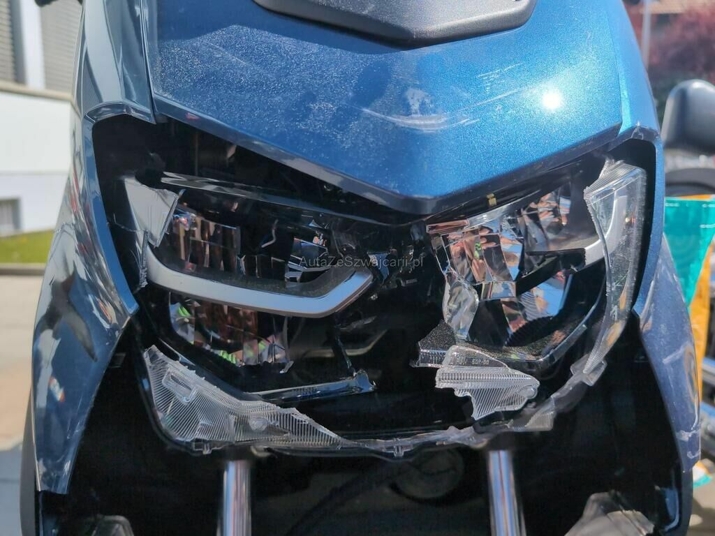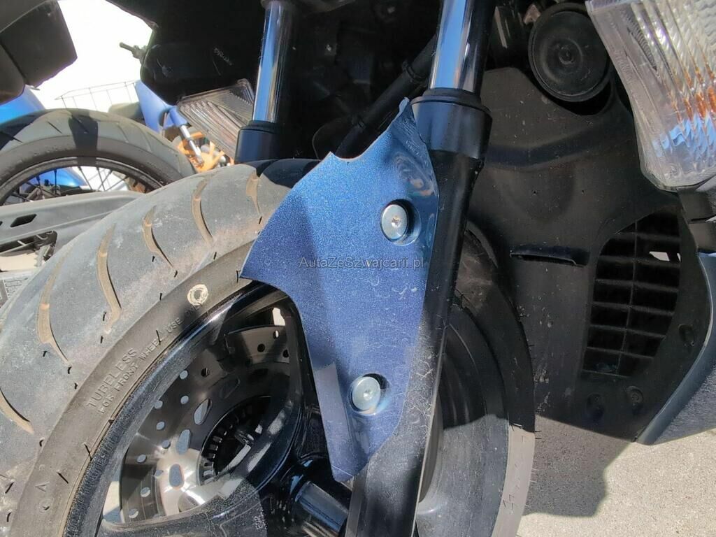 Aufprall in Fahrzeugfront mit Beschädigung von Verkleidungen, Scheinwerfer, Schutzblech, Verkabelung, Gabel sowie diversen Anbauteilen.