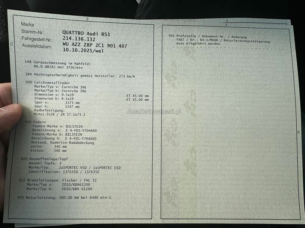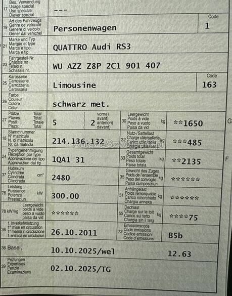 | Typ | RS3 Sportback 2.5 T FSI quattro S-Tronic |