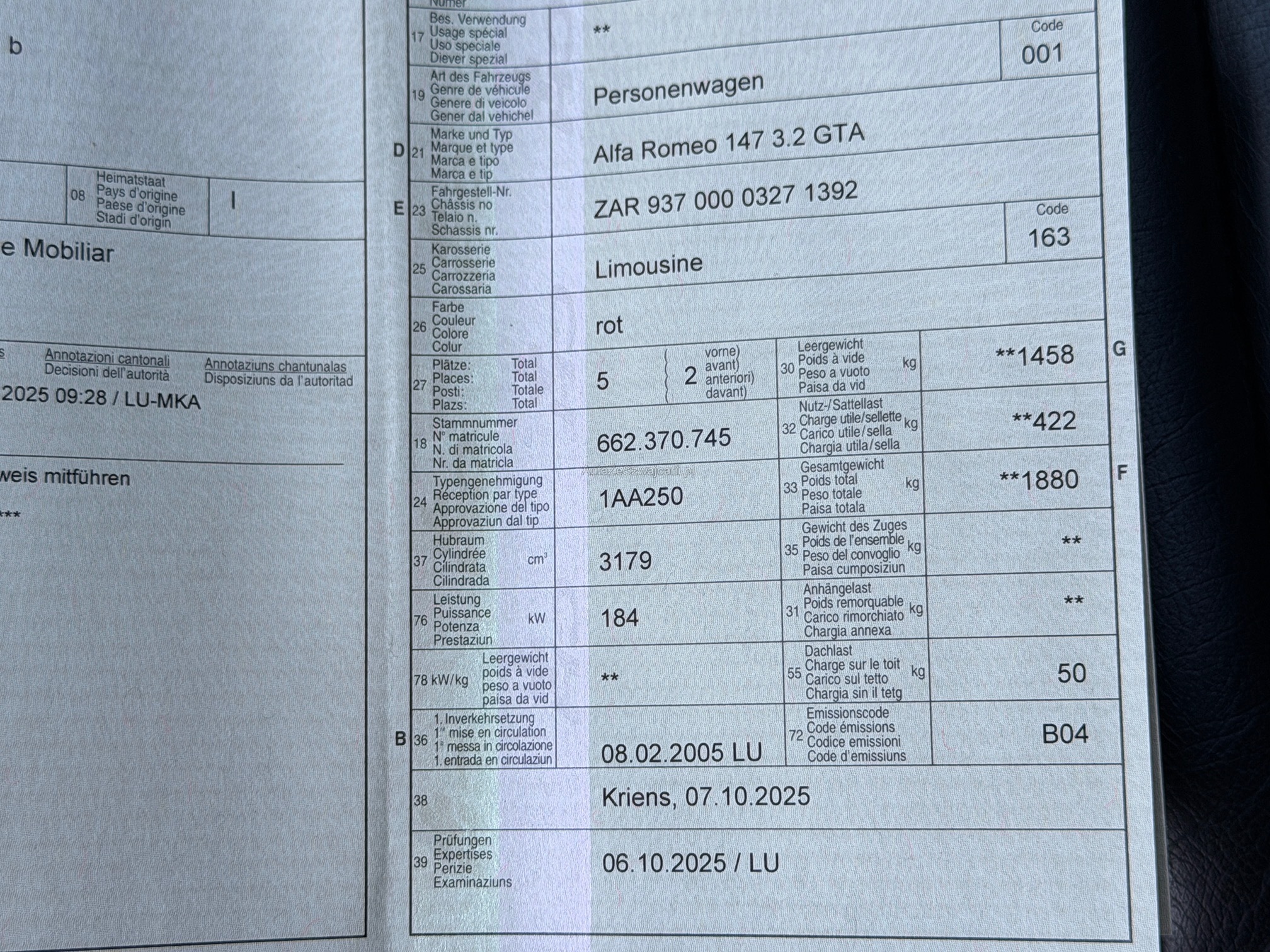 | VIN | ZARXXX |