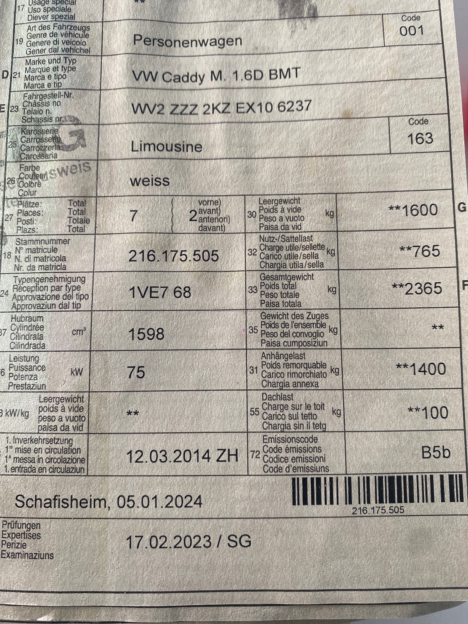 VW Caddy M. 1.6D BMT
