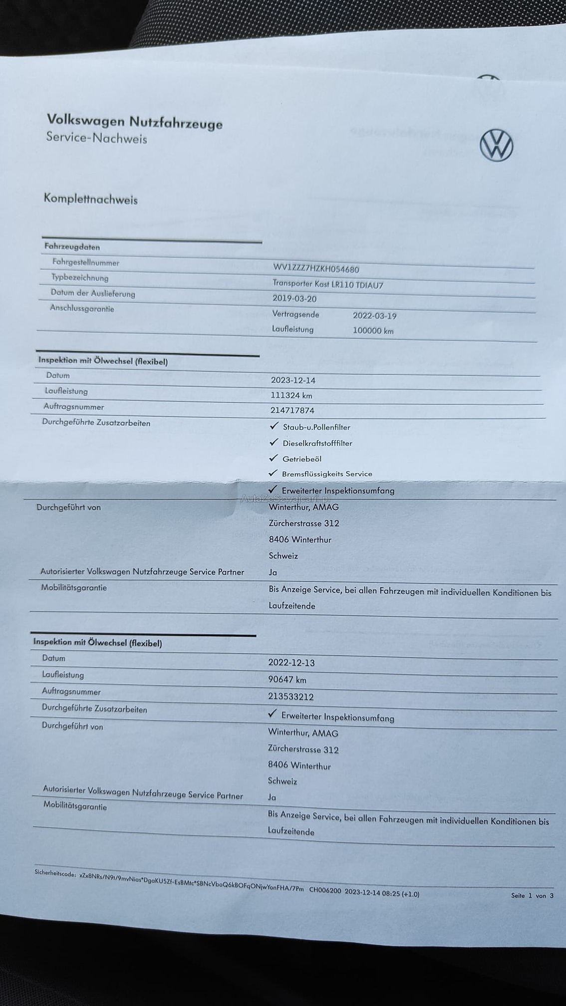 | VIN | WV1XXX |