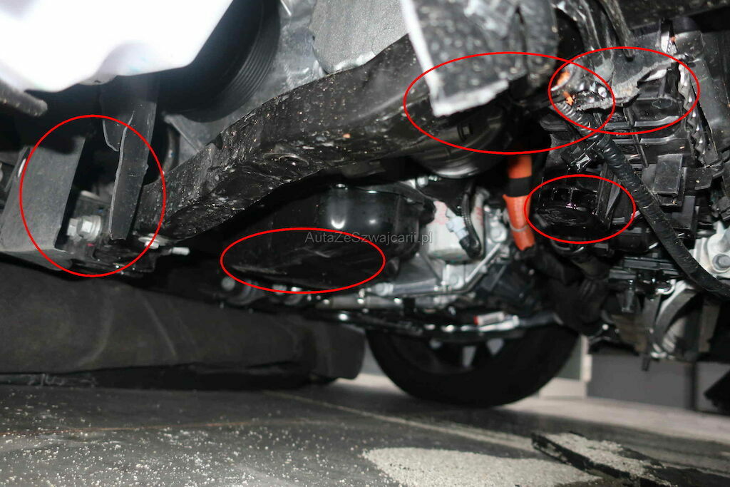 Parte anteriore con due fianchi anteriori, fondo veicolo pure danneggiato e assali anteriori
