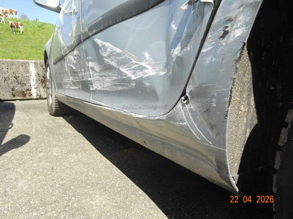 Türe VL stark deformiert, Türe HL gerissen, Seitenwand links deformiert, Schweller links Stark gestaucht. Felge HL beschädigt.