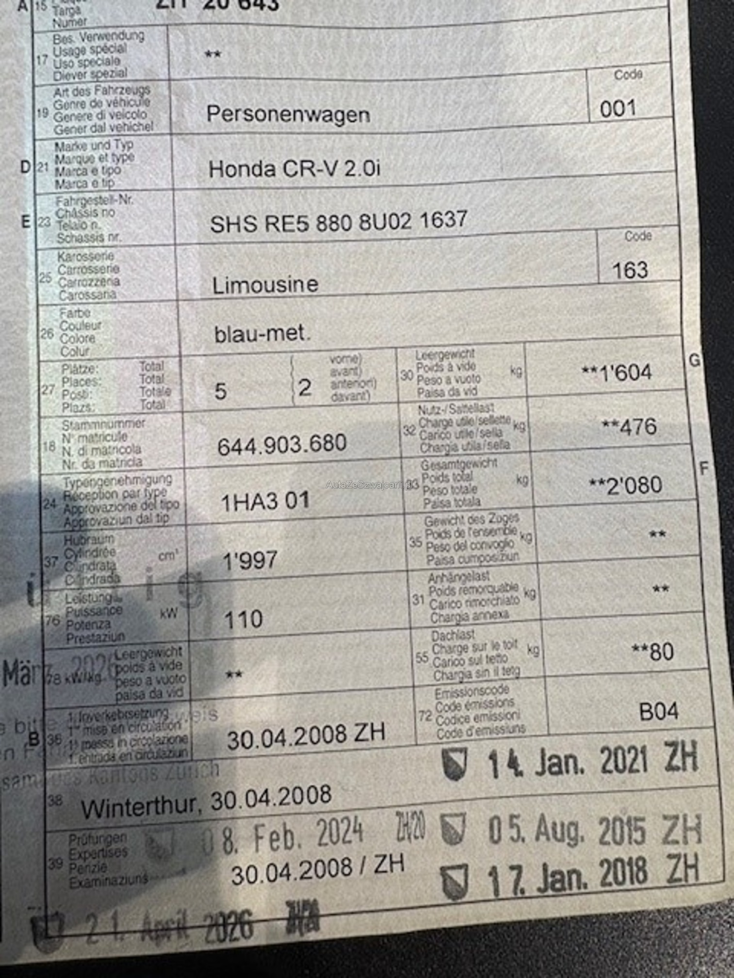 | Zahnriemen gewechselt | No |