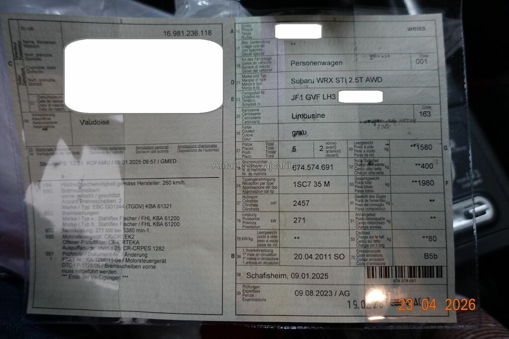 | Typ | Impreza WRX 2.5T AWD Sport |