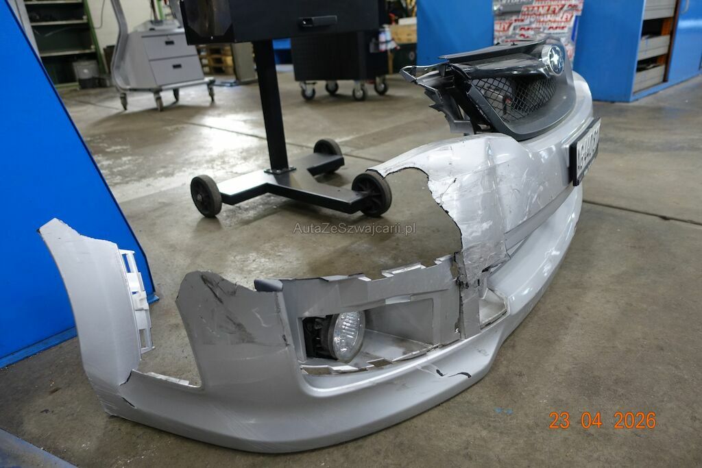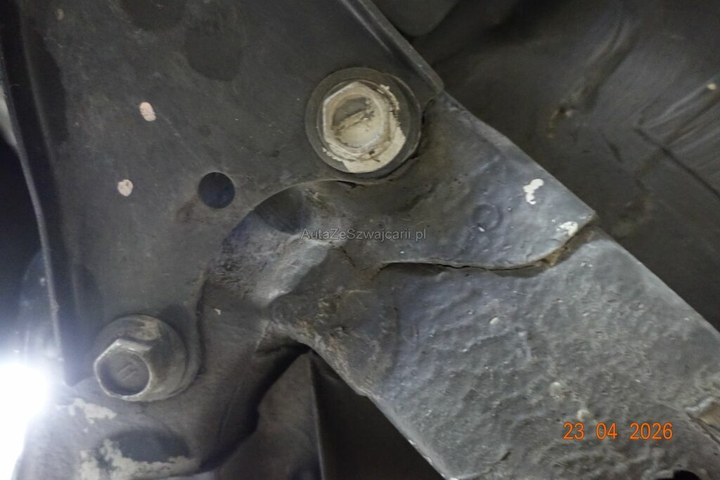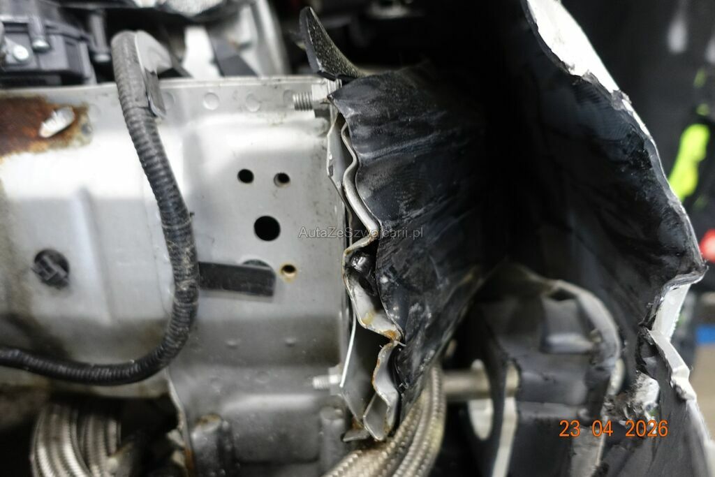 Die komplette Fahrzeugfront VR ist eingedrückt. Der Querlenker VR weist ebenfalls eine Deformation aus.