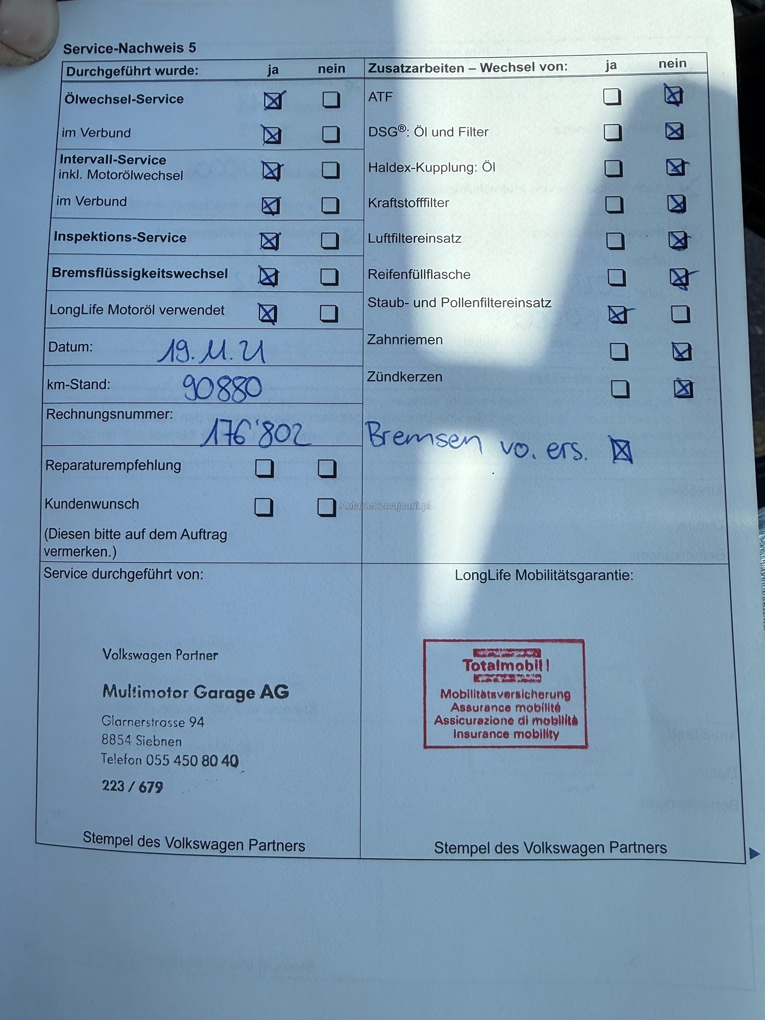 | Vordere Bremsen müssen ersetzt werden | No |