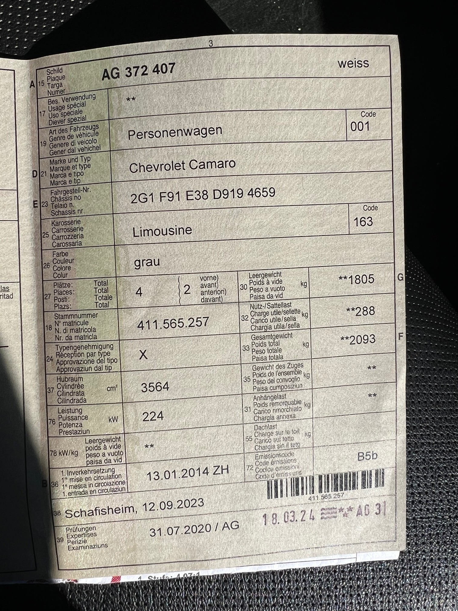 | Kommentar | - Es wurde kein vollständiger Werkstatttest durchgeführt - Probefahrt iO (Motor, Getriebe, Fahrwerk) - Carrosserieschäden und Gebrauchsspuren gemäss Bilder - Frontscheibe hat kleine Steinschläge, jedoch OHNE Rissbildung - Gute Ausstattung (el. Sitze, Soundsystem, Rückfahrkamera, usw.) - Service fällig (letzter Service war in unserer Werkstatt im März 2024 bei 153`863 KM) |