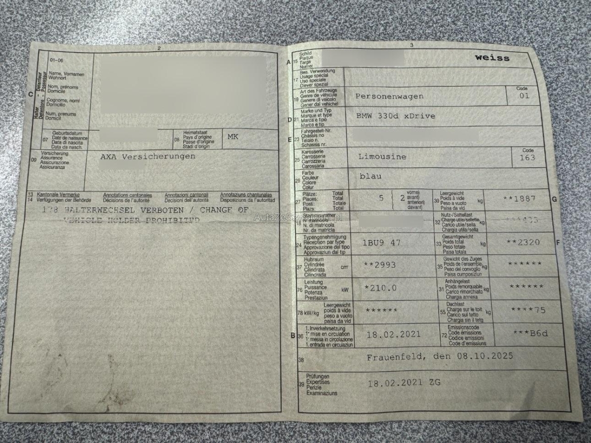 | Fahrzeugausweis | Vorhanden |