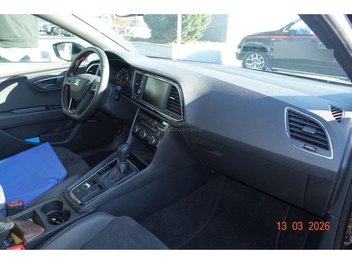 | Sonderausstattung | 4 Leichtmetallfelgen 18J mit Pneu, Assist: Einparkhilfe vorne und hinten mit optischer Anzeige, Assist: Rückfahrkamera, Dachhimmel schwarz, Lackierung: Metallic-Lackierung, Lenkrad mit Schaltwippen, Licht: LED Scheinwerfer, Media: Kartenmaterial ''Europa'' für Navigationssystem, Paket Alcantara und Sportsitze, Paket: Fahrerassistenzpaket 4, SEAT Garantie: Garantie 5 Jahre oder 100'000 km (ab 1. Inv.), Schlüsselloses Schliess- und Startsystem (KESSY), Winterpaket |