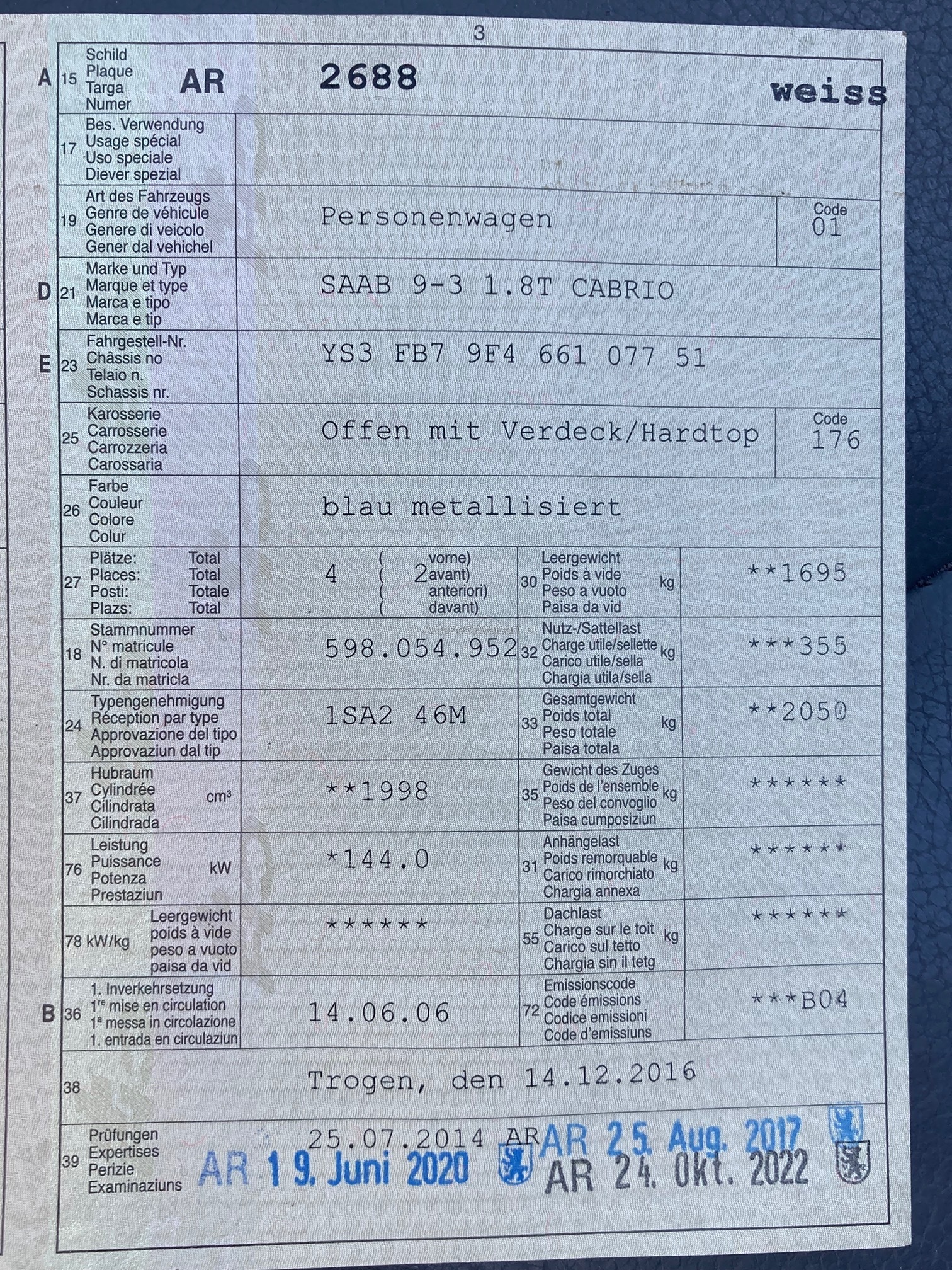 | VIN | YS3XXX |