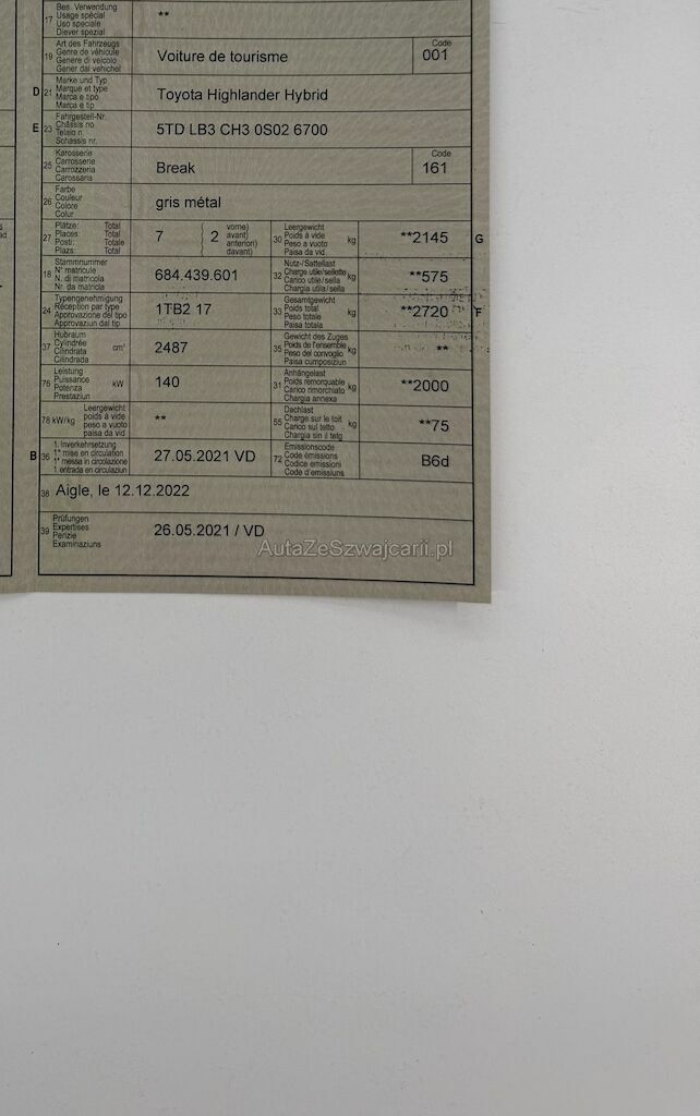 | Typ | Highlander Hybrid |