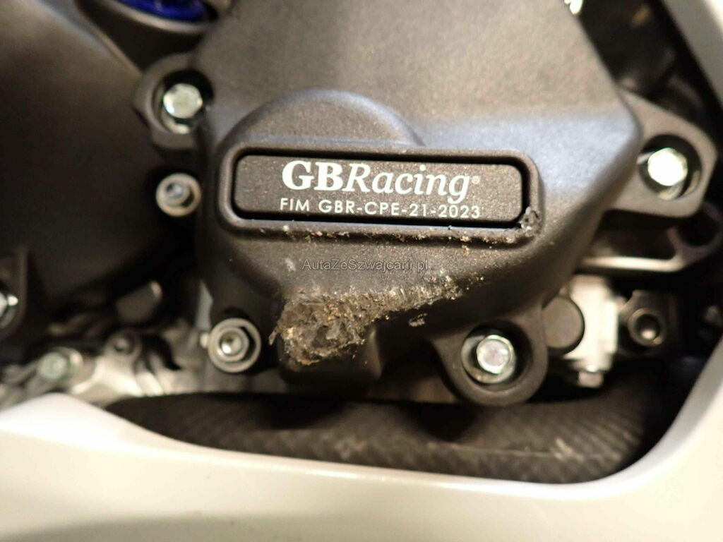 Motor läuft unrund und macht Geräusche; Cocpit, Lenker, Hebel, Tank und Heckrahmen eingedrückt; Sturzbügel aus Hauptrahmen gerissen; Motorendeckel und Auspuff Kratzer; diverse Verschalungen und Anbauteile gerissen oder verkratzt;
