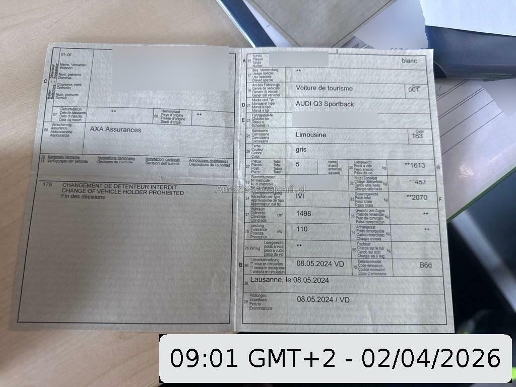 | Fahrzeugausweis | Vorhanden |