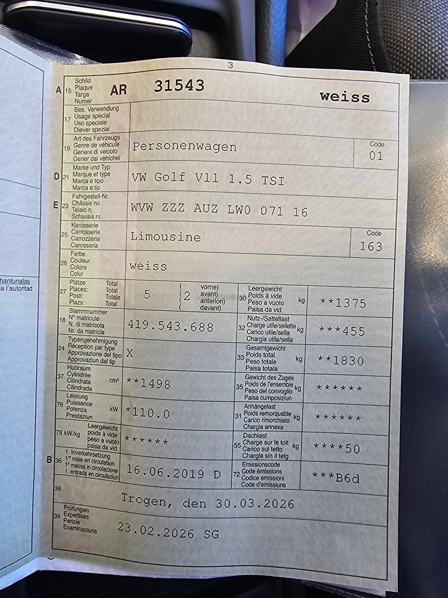 | Kommentar | Altersgemässe Gebrauchspuren, fährt und schaltet einwandfrei MFK & Service frisch gemacht (Service immer in VW Vertretung) Brandloch Fahrersitz / sehr leichter Rauchgeruch / Hutablage fehlt |