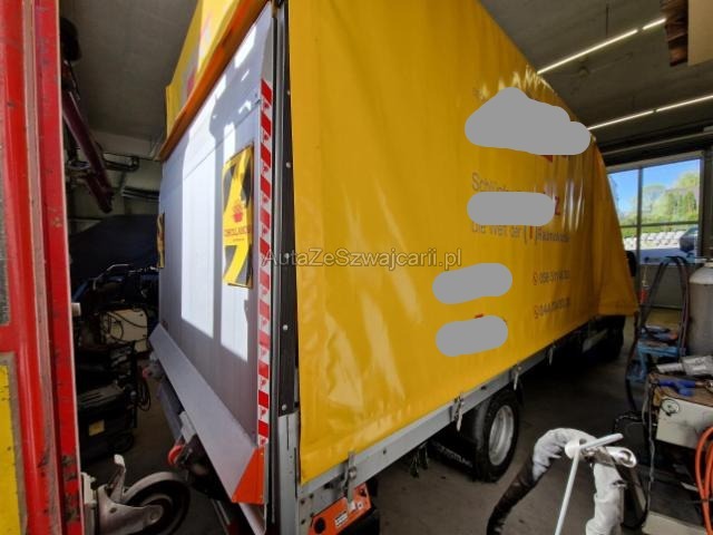 | Condition_and_Equipment | Zustand Fahrzeug muss transportiert werden (Höhe und Breite beachten). Fahrzeug ist NICHT fahrbar. Motor startet nicht, Ursache unbekannt. Batterie leer. Weitere wichtige Hinweise Das Getriebe wurde im Jahr 2024 erneuert. Die Plane und die Hebebühne wurden im Jahr 2025 erneuert. --- Links Anstoss links im Bereich der A-Säule. Tür vorne links ist eingedrückt. Front Front links eingedrückt. Kotflügel vorne rechts und links eingedrückt. Motorhaube eingedrückt. Frontblech/Maskenblech eingedrückt. Radhaus vorne links eingedrückt / gestaucht. Längsträger vorne links gestaucht. Fahrzeugvorbau nach rechts verschoben. Motor Risiko Motor. Risiko Getriebe. Motoranbauteile beschädigt. Achse Aufhängungsteile vorne links beschädigt. Lenkgetriebe ist beschädigt. Motoraufhängung/Aggregateträger ist beschädigt. Innenraum Fahrerairbag ausgelöst. Gurtstraffer ausgelöst. Sitz vorne rechts defekt. Glas Windschutzscheibe ist gerissen. Türscheibe vorne links ist zerbrochen / beschädigt. Weitere Beschädigungen Aufbau durch Anprall beschädigt. Schaden und Ausstattung gemäss beiliegenden Fotos. --- Serienaustattung Airbag Fahrerseite Elektrische Fensterheber Elektronische Wegfahrsperre Vorbereitung für Radioeinbau ESP Elektronisches Stabilitätsprogramm Schmutzfänger vorne Getönte Frontscheibe Tagesfahrtlichtschaltung Bordcomputer Dieselpartikelfilter ABS + EBV + ASR Keine Gewähr auf die Angaben der Serienausstattungen Sonderausstattung Radio/ CD Tempomat Anhänger-Steckdose 13-polig Nebelscheinwerfer vorne und Abbiegelicht Anhängerkupplung Kugelkopf inkl. Steckdose 13-polig Ausstattung Klimaanlage Tempomat |