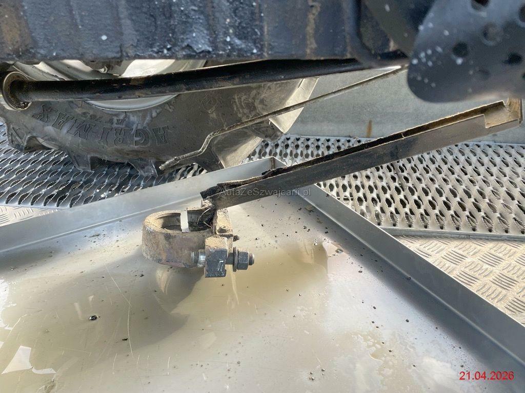 | Schadensbeschreibung | Beschreibung der Schäden: Vorderachse abgerissen und Aufnahme abgebrochen, div. Leitungen abgerissen, Getriebegehäuse gebrochen, Auspuff beschädigt, beide Felgen vo. beschädigt, Kotflügel v.l beschädigt, Kotflügel h.l beschädigt, Boden v.l verformt, div, Verkleidungen gebrochen Motor läuft nicht (Zustand unbekannt), Stundenzähler kann nicht mehr abgelesen werden, ca. 1'100 h vom Fz-Halter angegeben (Kabelstrang/Sicherungskasten beschädigt) Die spezielle Aufnahme am Auspuff für einen Auspuffschlauch wird vermutlich demontiert werden. |