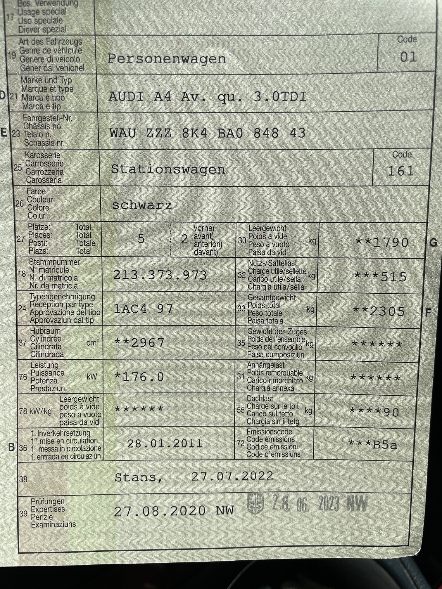 | VIN | WAUXXX |