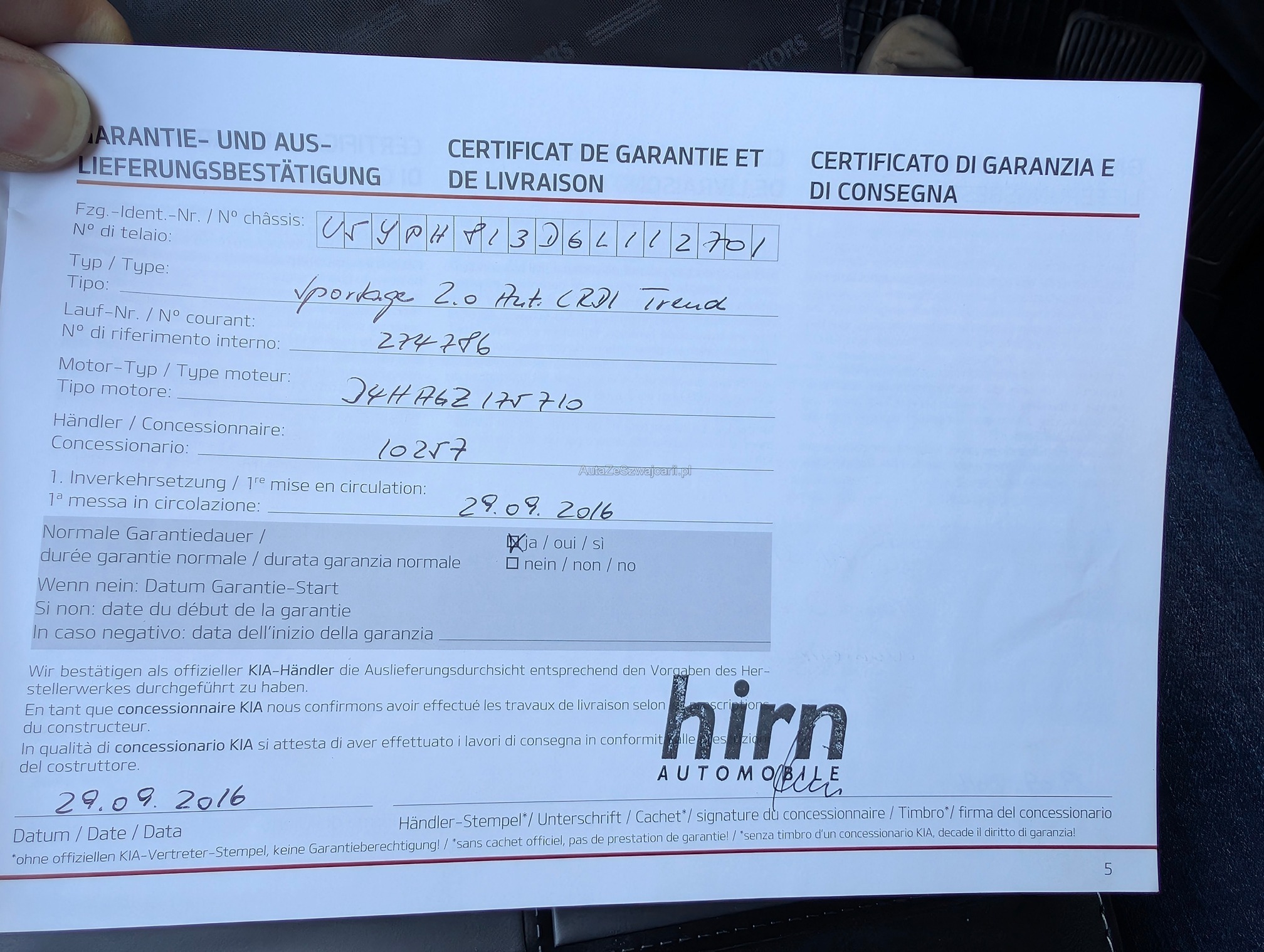 | Kommentar | Kein Eintauschtest vorgenommen. Fahrzeug ist in sehr schönem Zustand. Fahrzeug wird ohne Garantie, ab Platz angeboten. Gesetzliche Gewährleistung aisgeschlossen. Wandelungen und Minderungen werden wegbedungen. Für sichtbare und nicht sichtbare Schäden wird nicht gehaftet. |