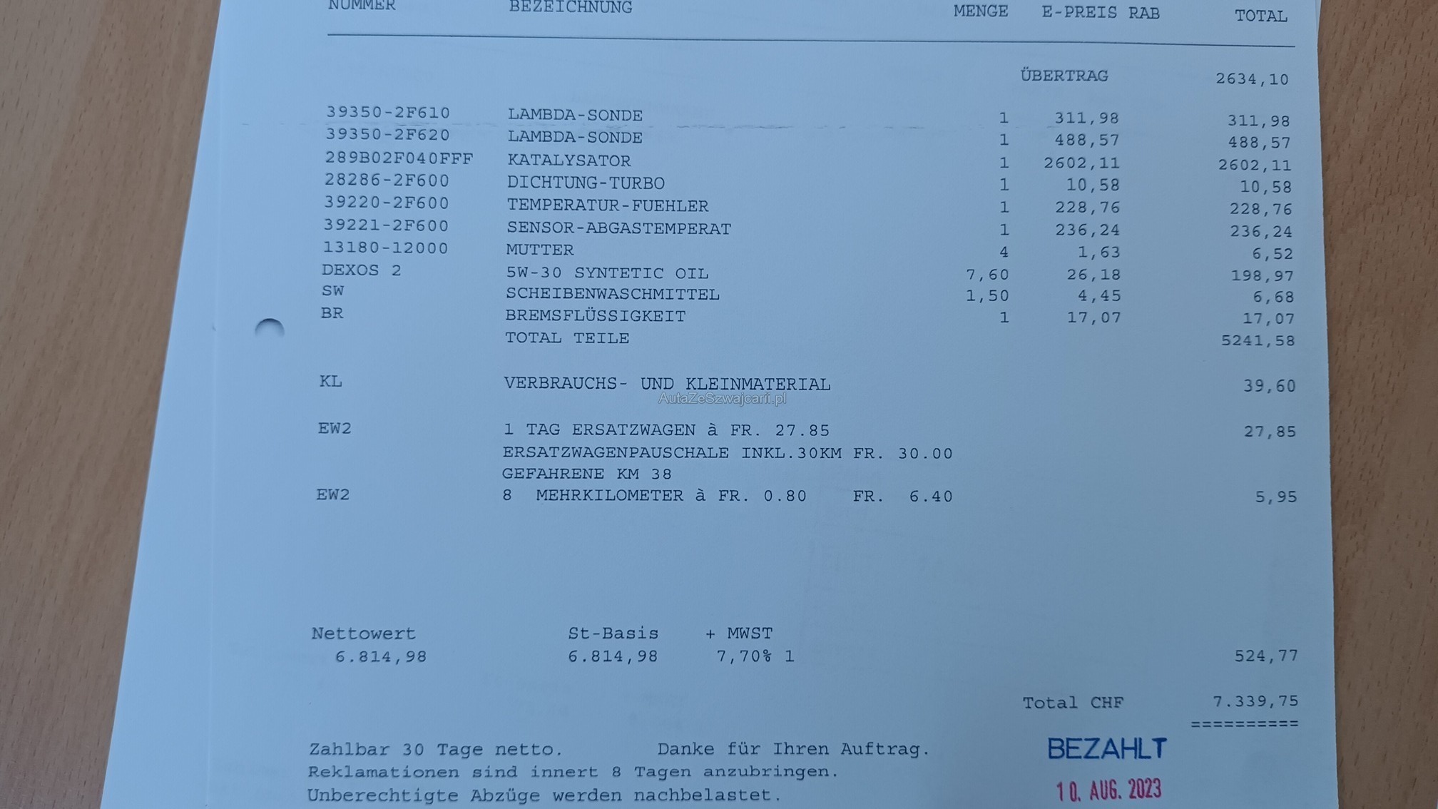 | Kommentar | sehr gepflegter Zustand leichter Hagelschaden Dieselpartikelfilter ist defekt (wurde bereits ersetzt im 2023) 8 fach bereift, Reifen müssen ers. werden Am Fahrzeug wurde keine vollumfängliche Prüfung der mechanischen Teile und der Carrosserie durchgeführt! Das Risiko liegt somit vollumfänglich beim Käufer. Um Missverständnisse zu vermeiden kann das Fahrzeug auf Voranmeldung besichtigt & getestet werden. Wird davon bewusst kein Gebrauch gemacht, liegt die Verantwortung beim Käufer. Nach Zuschlag, keine Nachverhandlungen möglich. Ab Platz ohne Garantie, Wandelung und Minderung werden wegbedungen. |