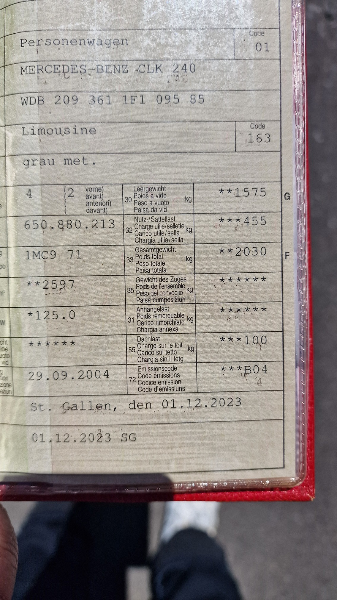 | VIN | WDBXXX |