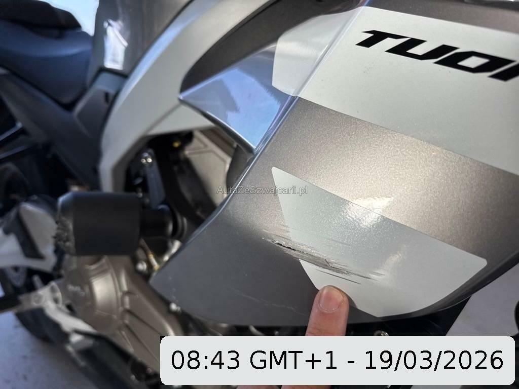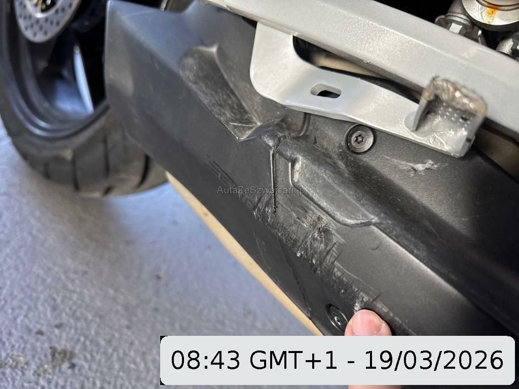 | Beschädigungen | Armaturen, Auspuffkollektor, Aussenspiegel links, Aussenspiegel rechts, Front, Gabelholm, Griff rechts, Heck, Kabelstrang, Kupplungsgehäuse, Lenker, Rad hinten, Rad vorne, Rad vorne links, Rad vorne rechts, Rücklicht, Rücklicht rechts, Scheinwerfer, Schutzblech hinten, Schutzblech vorne, Schwinge, Seite rechts, Verschalungen hinten, Verschalungen rechts |