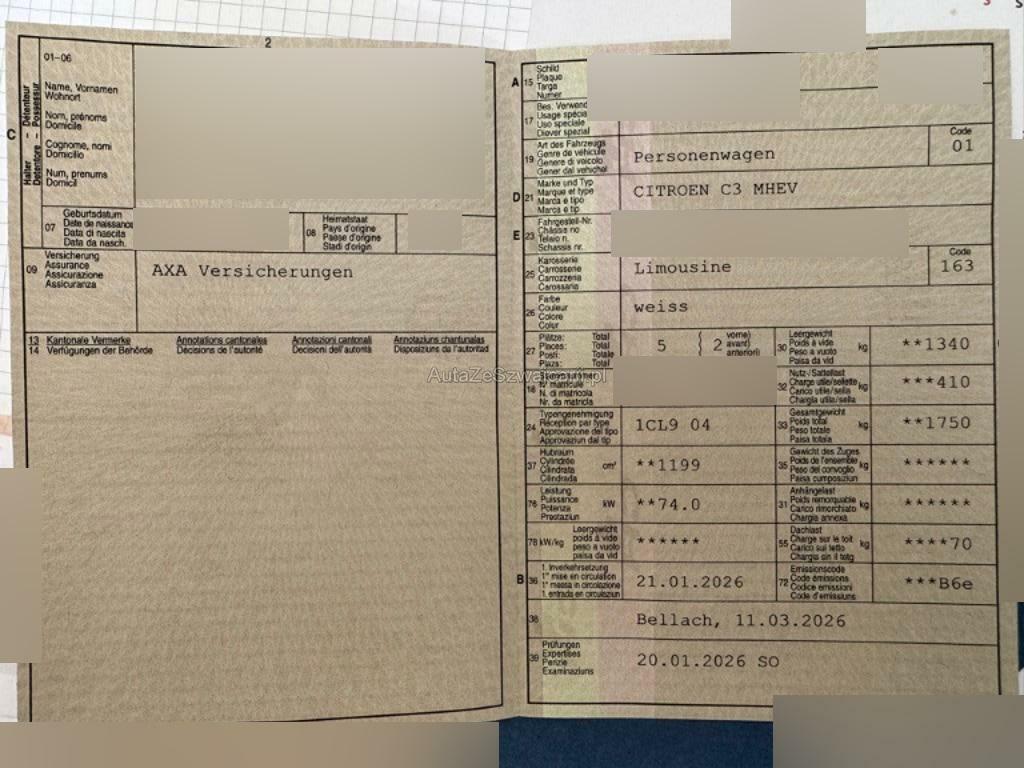 | Fahrzeugausweis | Vorhanden |