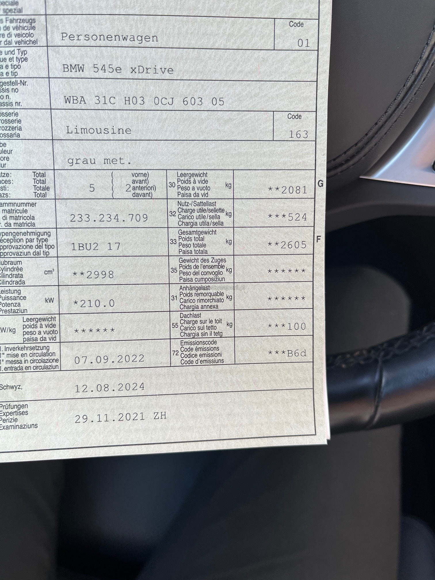 | Kommentar | CH-Fahrzeug aus 1. Hand in soweit ersichtlich perfektem Zustand, ausser der einen kleinen Abschürfung VL - siehe Bild Knapp 71000km aller gefahrenen Kilometer wurden rein elektrisch gemacht Werksgarantie bis September 2027 Frisch ab Service - letzte Woche gemacht Am Fahrzeug wurde kein Werkstatttest gemacht (Für sichtbare oder nicht sichtbare Mängel wird nicht gehaftet). Wir testen & kontrollieren nicht alle Funktionen des Fahrzeugs. Das Risiko liegt somit vollumfänglich beim Käufer. Ab Platz ohne Garantie, Wandelung und Minderung werden wegbedungen. |