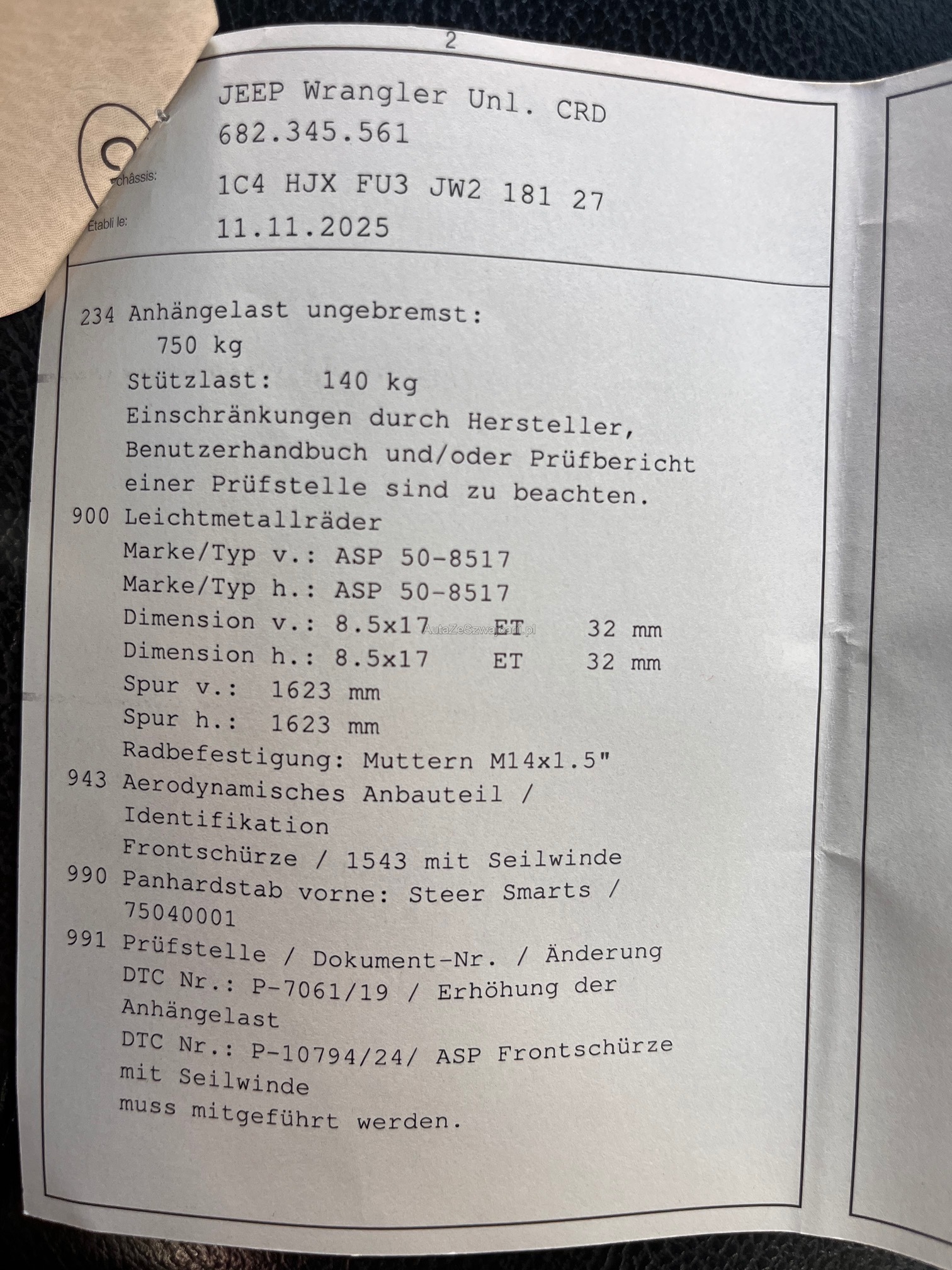 | Rost am Fahrzeug | Yes |